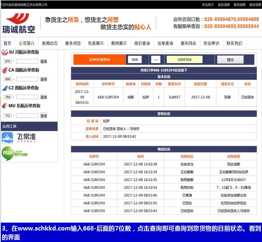成都瑞誠(chéng)航空貨運(yùn);成都瑞誠(chéng)航空快遞;成都瑞誠(chéng)航空物流 四川空運(yùn)物流集團(tuán)有限公司 股東會(huì)員單位之一 業(yè)務(wù)、咨詢(xún)、訂艙、電話: 028-8588 4670 028-85884680 客戶服務(wù)經(jīng)理:羅 莉:181-0822-9452 客戶服務(wù)經(jīng)理:胡雨琪:189-8189-7403 客戶服務(wù)經(jīng)理:王 玲:189-8088-6984 客戶服務(wù)經(jīng)理:潘曉燕:181-0822-2047 客戶服務(wù)經(jīng)理:胡小姐:138-8081-5006 駐機(jī)場(chǎng)操作負(fù)責(zé)人:胡林:134-5861-8897 服務(wù)意見(jiàn)與建議:李延兵:139-8072-7403 2021年后搬遷至:成都市機(jī)場(chǎng)南貨運(yùn)路6號(hào) 機(jī)場(chǎng)空運(yùn)收貨點(diǎn):成都雙流國(guó)際機(jī)場(chǎng) 機(jī)場(chǎng)南貨運(yùn)6號(hào)四川空運(yùn)物流集團(tuán)(成都瑞誠(chéng)航空物流) 導(dǎo) 航:搜索"四川空運(yùn)物流集團(tuán)"、"成都瑞誠(chéng)航空快遞"、"成都瑞誠(chéng)航空貨運(yùn)" "今日達(dá)航空貨運(yùn)"四川空運(yùn)物流集團(tuán)"等都可找到公司位置。